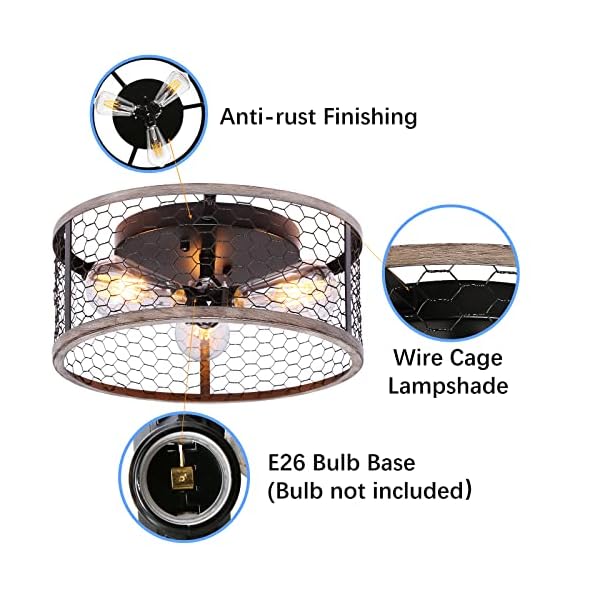 Ohniyou Rustic Ceiling Light Fixture Indoor,3-Light Retro Flush Mount Ceiling Light Lamp,Farmhouse Ceiling Light Fixture for Kitchen Bedroom Living Room Bathroom Hallway Entryway(Flush Mount)