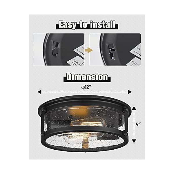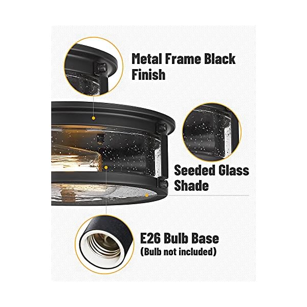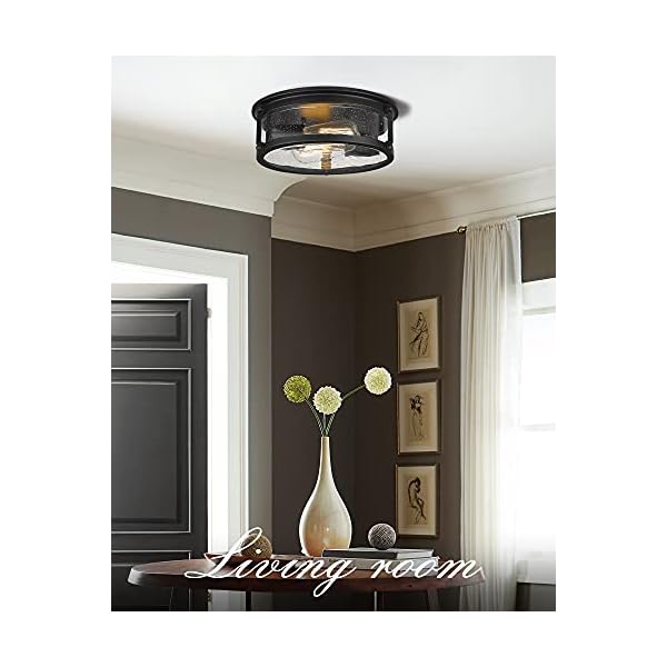 FOITTON Industrial Flush Mount Ceiling Light, 2-Light Farmhouse Metal Cage Ceiling Lights for Hallway,Kitchen,Stairways,Bedroom,Matte Black Finish