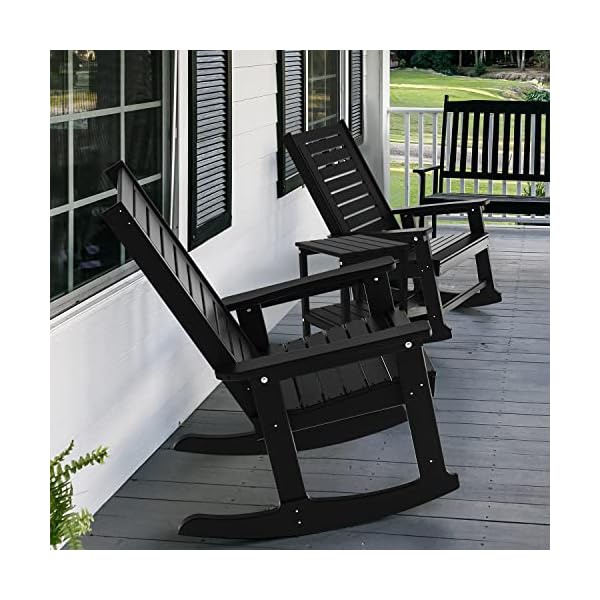 GREENVINES Outdoor Rocking Chairs Set of 2, HDPE All-Weather Porch Rockers, Oversized Plastic Rocker w/High Back for Outside Indoor Living Room Backyard Balcony Garden, Support 400 lbs, Black