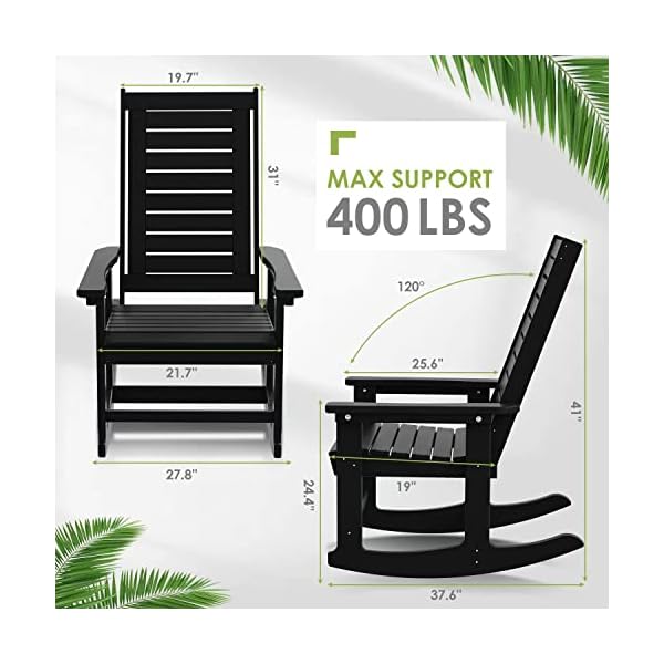 【Spacious & Heavy-duty】 Overall product dimensions: 27.8’’ W x 37.6’’D x 41’’H (Single Chair). Maximum weight capacity: 400 lbs. Product weight: 44 lbs (Single Chair). It brings you and your loved ones an amazing outside and indoor experience no matter you are reading a book or taking a nap on our rockers