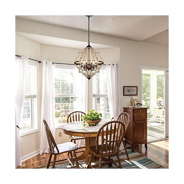 HANDMADE WOOD CHANDELIER: This 6-Light chandelier in the wood and antique forged iron artisanal finish offers, bringing an inexpensive luxury in conjunction with unique American country sensations to your sweet home. It’s perfect for kitchen, dining room, living room, entry way, hallway or foyer.