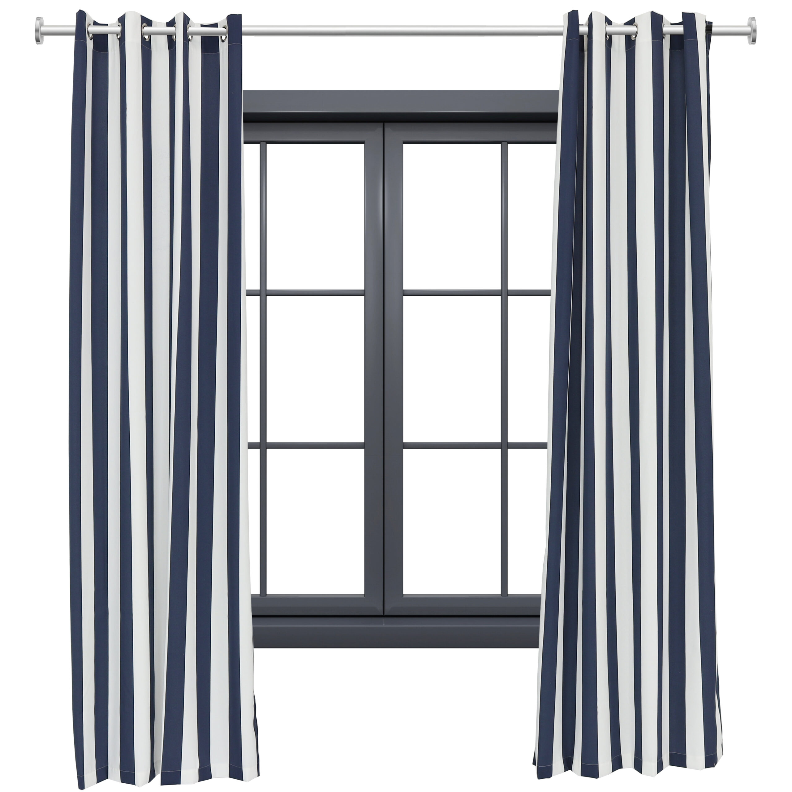 2 Indoor/Outdoor Curtain Panels with Grommet Top – 52 x 108 in (1.32 x 2.74 m) – Blue/White Stripe
