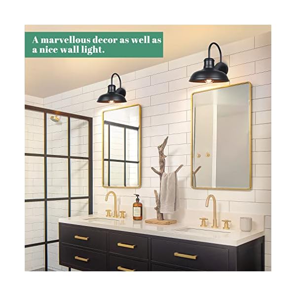 2-Pack Matte Black Outdoor Wall Lights, Modern Farmhouse Porch Wall Light Fixtures Wall Mount, Industrial Gooseneck Wall Sconce, Exterior E26 Barn Lights for Garage Frontdoor Entryway Bathroom Doorway