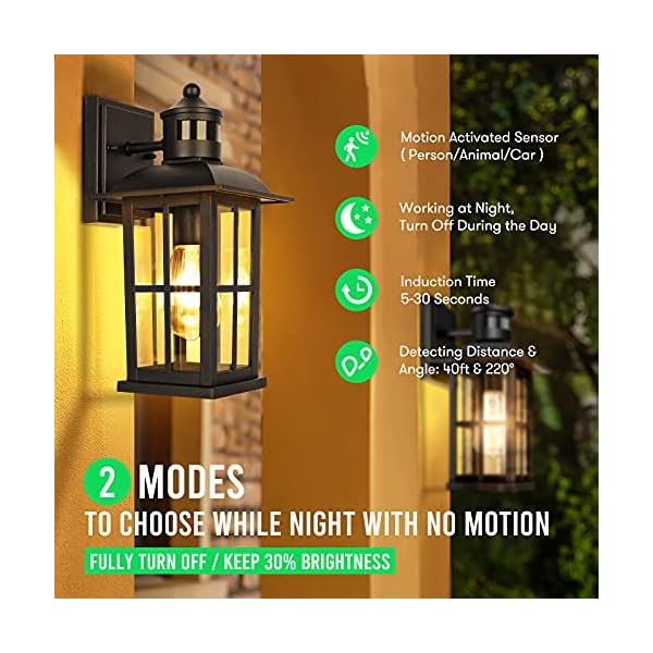 2 Packs Motion Sensor Wall Lights, Dusk to Dawn Outdoor Lighting, LED Exterior Lantern Fixtures Wall Sconce, Anti-Rust Porch Light Fixtures, Wall Mount for Garage, Doorway, 100% Aluminum, Waterproof