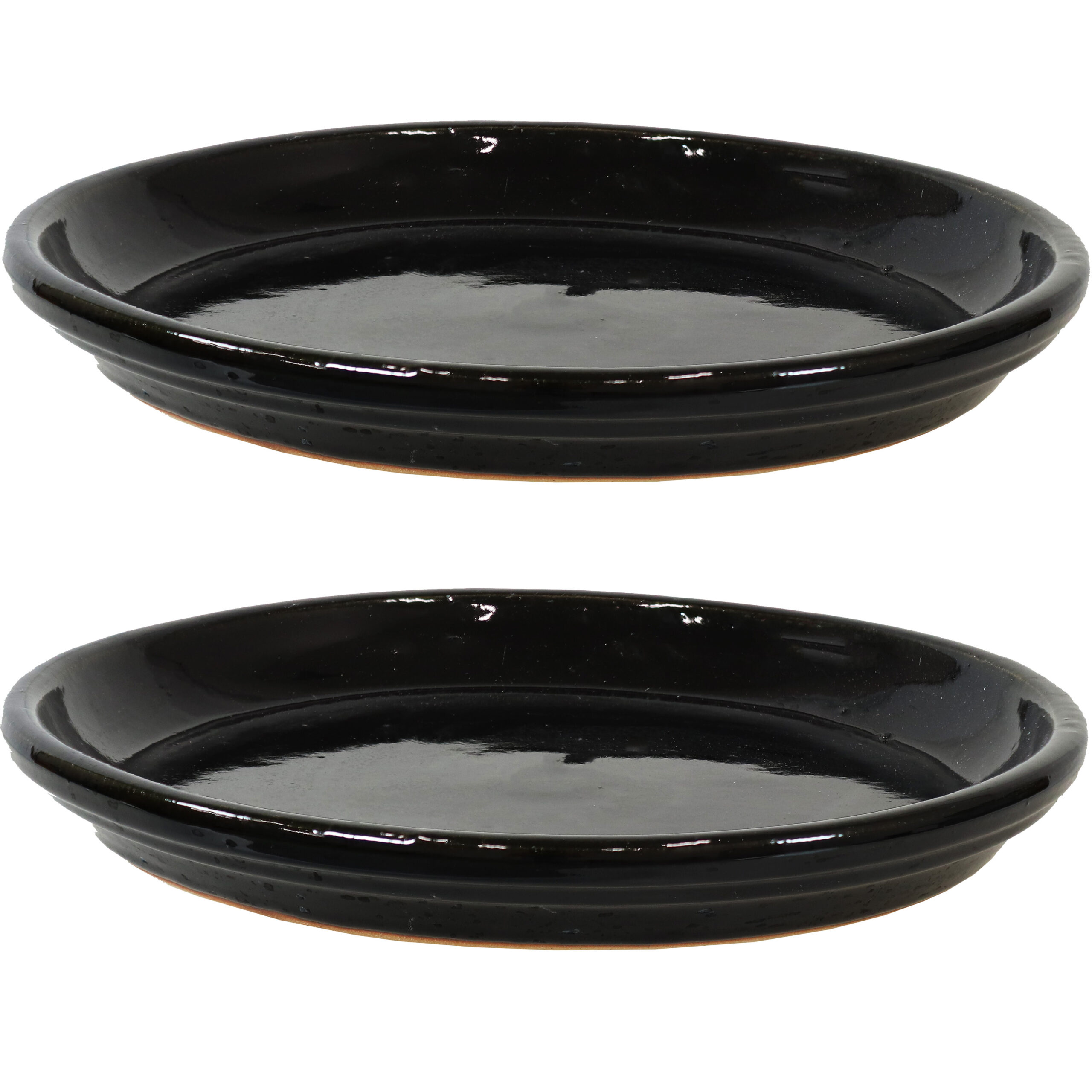 Place your favorite planters indoors or outdoors with confidence by using these glazed ceramic saucers for planters. Each saucer is a great tool to prevent planters with drainage holes from leaking water and soil onto the floor. Made from durable ceramic with a shiny glaze, this set of saucers is sure to be long lasting and withstand the elements.