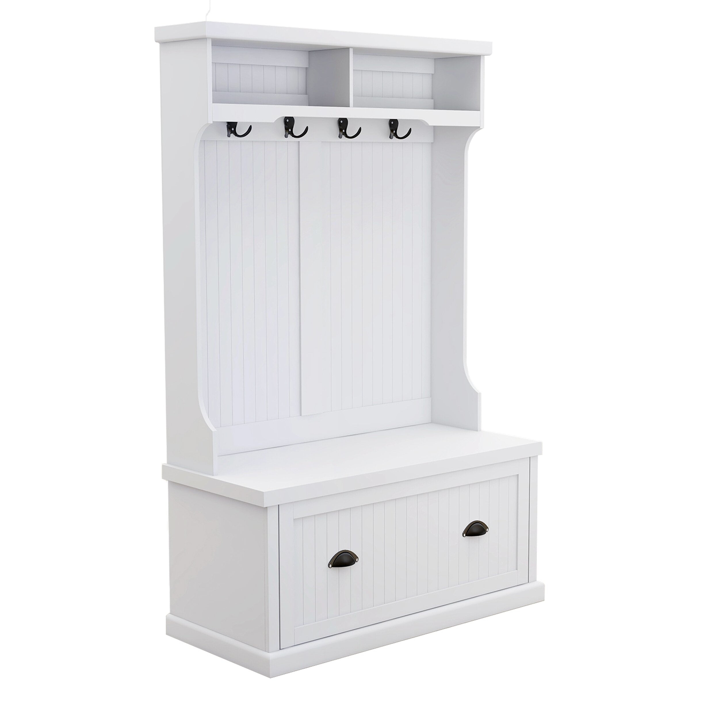 LILI,Living Room Hall Trees has 4 shoe storage cabinets,White