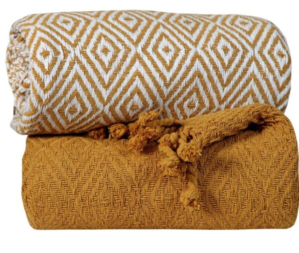 Keep warm in any season with this lightweight throw blanket. Crafted in India from 100% combed cotton, it features a light, all-season weight designed for year-round use. It’s also fade-resistant, so it’s a great option to take out to the deck to warm you up during cool evenings. Plus, when it’s time for a refresh, just pop this blanket in the washing machine. Plus, it arrives in a set of two: One features a two-tone diamond pattern, and the other, a tonal diamond pattern.