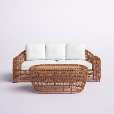This set brings the luxury vineyard-inspired look to any patio. Fashioned with handwoven butterscotch-colored wicker and a deep breezy aesthetic. Both the sofa and the table come fully assembled. Joss & Main