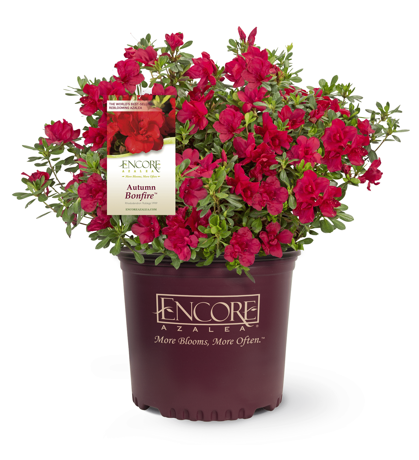 Order Autumn Bonfire™ Encore® Azalea Online The Autumn Bonfire™ Encore® Azalea shrub is a repeat bloomer that adds a splash of cultivated color with minimal maintenance—making it the perfect choice for almost any landscape! The encore azalea tree is compact, fast-growing, and is known as a deep red encore azalea because of its bright red blooms with darker colored crimson spots. The blooms are true semi-double and single flowers that contrast the bright green foliage. This beautiful dwarf azalea variety is an eye-catching statement with its funnel-shaped red blooms that grow from spring until winter. Encore Azalea Landscaping Ideas This blooming azalea encore bonfire is an excellent choice for mass planting or as an accent plant to add a beautiful red burst of color to your landscape or flower bed. It is an evergreen azalea and will keep its green color all year long. AUTUMN BONFIRE ENCORE AZALEA CARE Grow encore azalea bushes across the United States in USDA growing zones 6-10. This plant prefers 4-6 hours of morning and afternoon full sun with intermittent shade and does best in moist, well-drained soils that have a lower soil pH. Slightly acidic garden soil is best for keeping this true red azalea healthy. A slow-release fertilizer applied annually in early spring will help encourage growth and red flowers on this fast-growing dwarf flowering shrub. Apply the fertilizer at the top of the root ball for best results. The azalea encore autumn bonfire is a drought-tolerant, repeat bloomer that has a mature height of 3 feet with an equal spread. The 3-gallon encore azalea is also pest and disease resistant. It is easy to grow and looks gorgeous in any garden! Shop the Autumn Bonfire™ Encore® Azaleas for sale. Check out all our Azalea shrubs for sale.