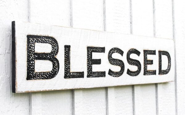 Blessed Sign Horizontal – (Available in 3 Sizes) Carved in a Wood Board Rustic Distressed Kitchen Farmhouse Style Restaurant
