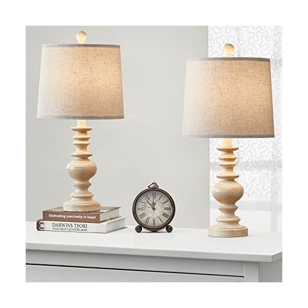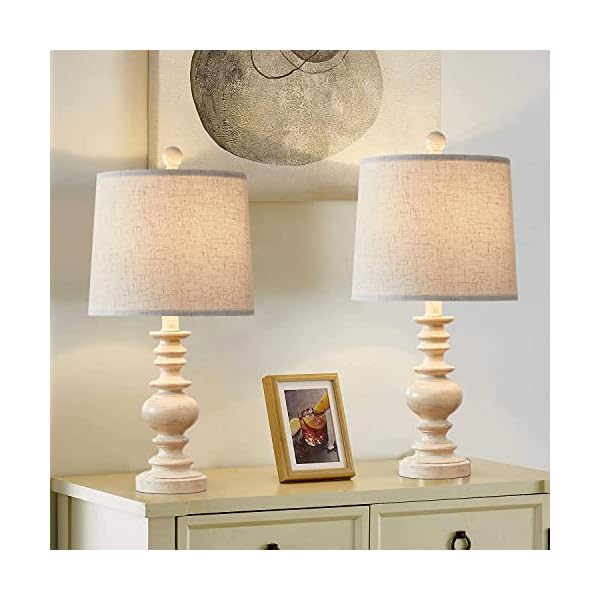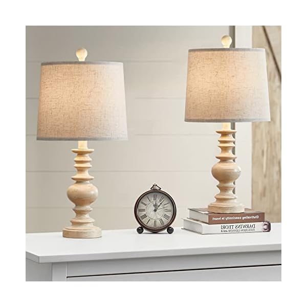 BOBOMOMO Tradition 20.5” Rustic Table Lamp Set of 2 for Living Room Farmhouse Bedside Desk Lamps Bedroom Nightstand Vintage Lamps Linen Washed
