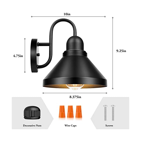 Brightever Gooseneck Outdoor Light Fixtures, 2-Pack Farmhouse Barn Lights for Porch, Industrial Black Exterior Wall Sconce for Garage, Patio, E26 Base Anti-Rust, Bulb not Included