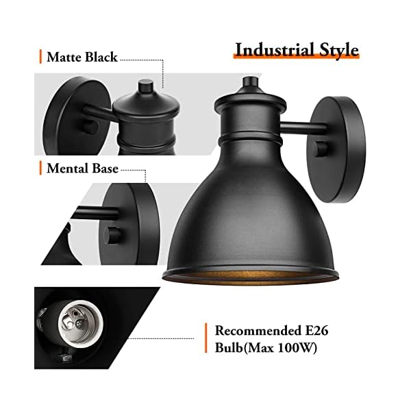 Brightever Outdoor Lights Wall Sconces Lantern, Farmhouse Wall Mount Porch Lights Fixtures, Industrial Patio Exterior Barn Light, Matte Black E26 Socket Lamp for Garage Doorway Bathroom(2 Packs)