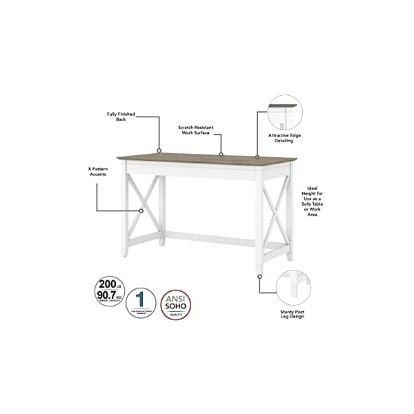 Upgrade your home place of business with this natural-having a look desk from the Key West Collection. The overall dimensions of 48″W x 24″D provide ample workspace, and the unique x pattern accent at the side panels adds a relaxed and airy style. The sturdy post leg design ensures stability. The authentic finish offers a natural reclaimed wood look, bringing a calming island escape to your space. Not only does the home place of business desk provide an excellent height to be used as a sofa table, but it also features a finished back, allowing it to be placed anywhere in the room. This versatile study desk is perfect for small place of business spaces, bringing a spacious feeling to your work environment. Elevate your organization game with Key West Collection storage options like a desktop organizer (not included), designed to keep the whole lot as an alternative and you on top of it all. This PC desk meets ANSI/SOHO standards for safety and performance and is backed by the Bush Furniture 1-year manufacturer’s warranty. Take a look at the full Key West Collection for coordinating items to be had and let it turn your workspace into an island retreat. Make a choice this studio desk for a relaxed and stylish workspace that inspires productivity.