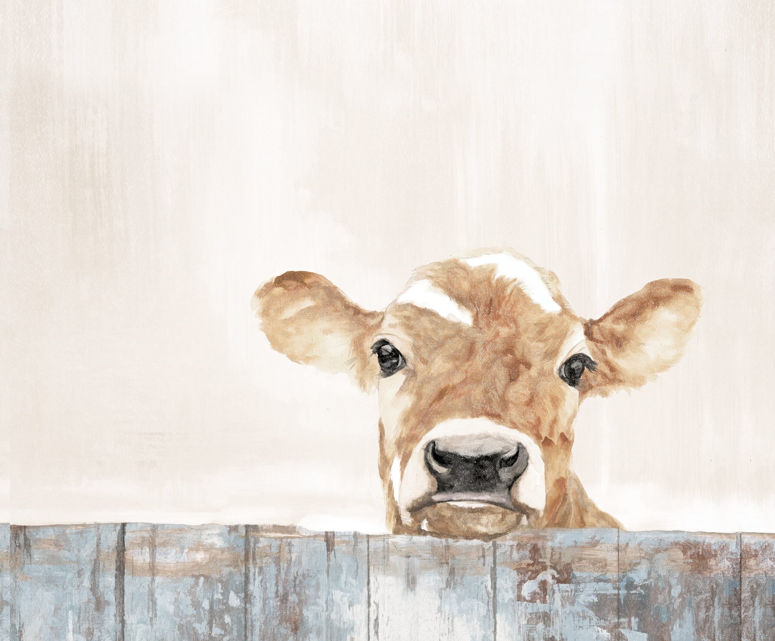 Calf On Abstract Fence – Wrapped Canvas Painting