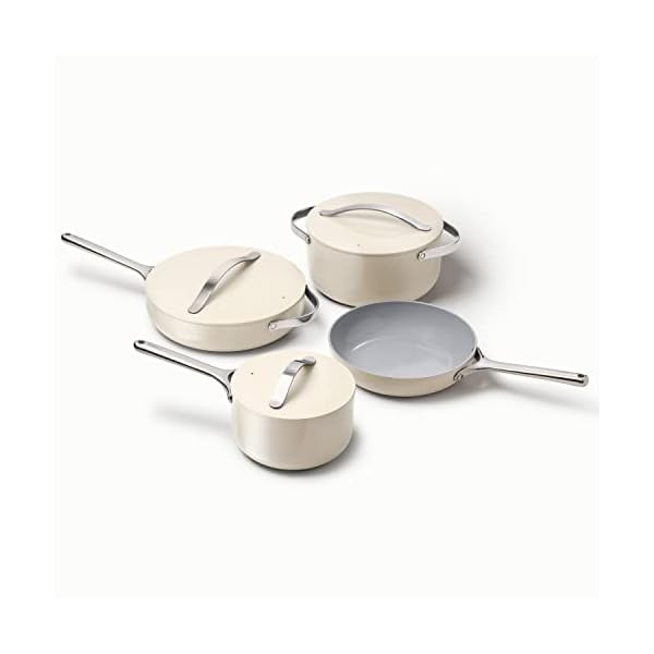 Caraway Nonstick Ceramic Cookware Set (12 Piece) Pots, Pans, Lids and Kitchen Storage – Non Toxic, PTFE & PFOA Free – Oven Safe & Compatible with All Stovetops (Gas, Electric & Induction) – Cream