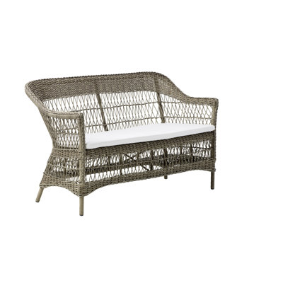 The Charlot Outdoor 2-Seater Sofa by Sika Design showcases an airy, open weave design in all-weather wicker. Crafted from a lightweight AluRattan™ weatherproof aluminum frame and woven in maintenance-free polyethylene ArtFibre™ fibers the sofa offers an eye-pleasing aesthetic along with UV, water, and stain resistance for year-round outdoor lounging. Finished with a bench cushion, the Charlot offers a picture-perfect backdrop for evening cocktails in the garden or quietly relaxing on the patio with morning coffee and a book. Sika Design Color: Snow White