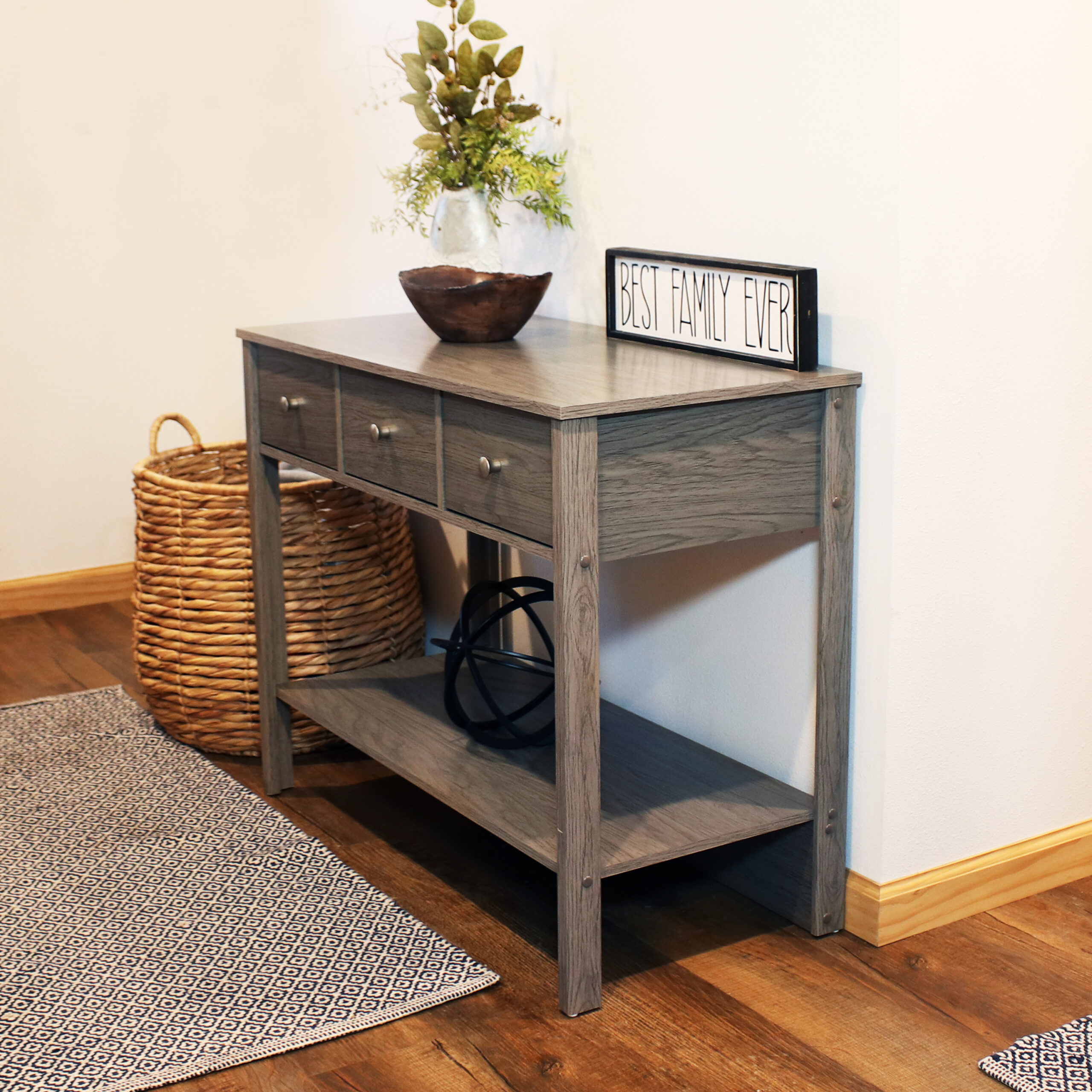 Classic Entryway Table with 3 Drawers – Thunder Gray