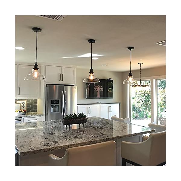 Industrial and Unfashionable Style: clear handblown glass dome shade with oil rubbed bronze finish pendant light creates an industrial yet vintage accent; suitable for the kitchen island, coffee shop, bar or dining room and place of business