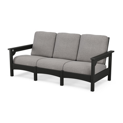 Bring the same beautiful style and cozy comfort of your family room to your outdoor living space with the deep-seating sofa. With fast-drying cushions and all-weather lumber, this plush sofa seats three and features clean lines with a curved arm detail — the perfect piece for any outdoor space POLYWOOD® Color: Grey Revolution®