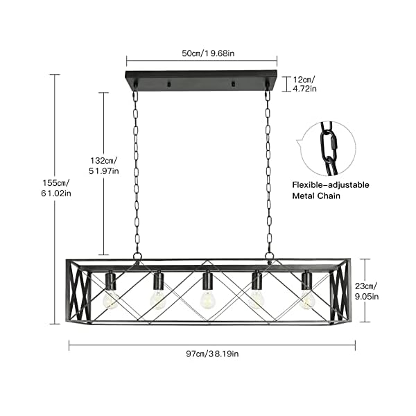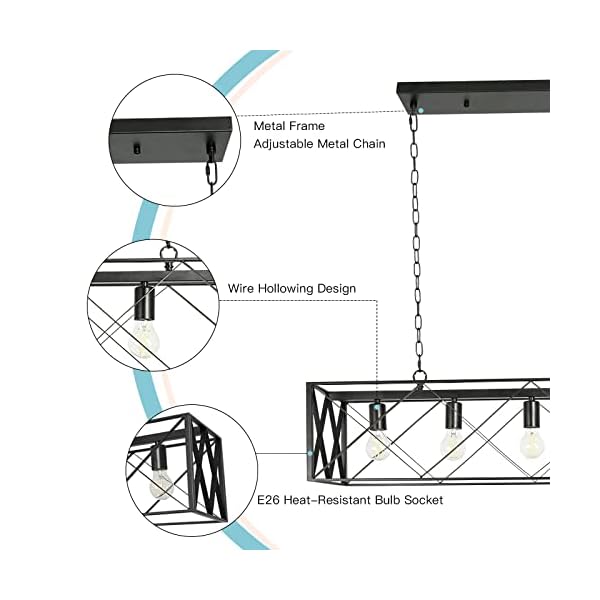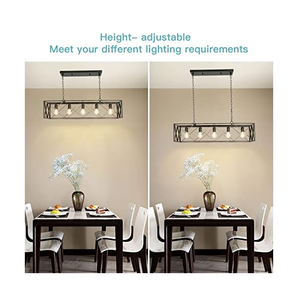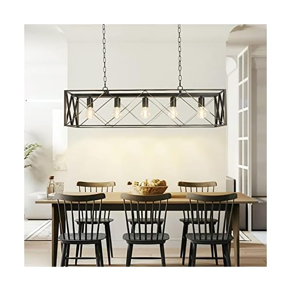Depuley 5-Light Industrial Kitchen Island Pendant Light Fixture, Flush Mount Ceiling Hanging Light with Metal Frame, Farmhouse Black Chandelier Lighting for Dining Room Living Room, E26 Bulb Include