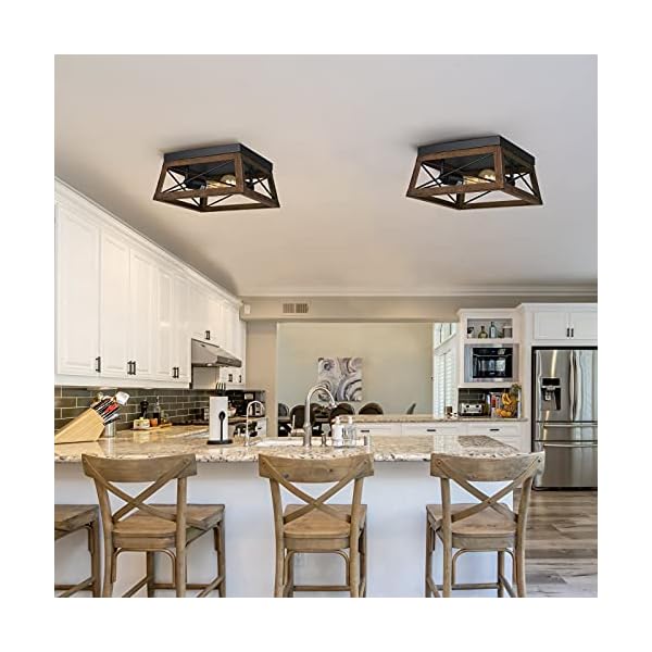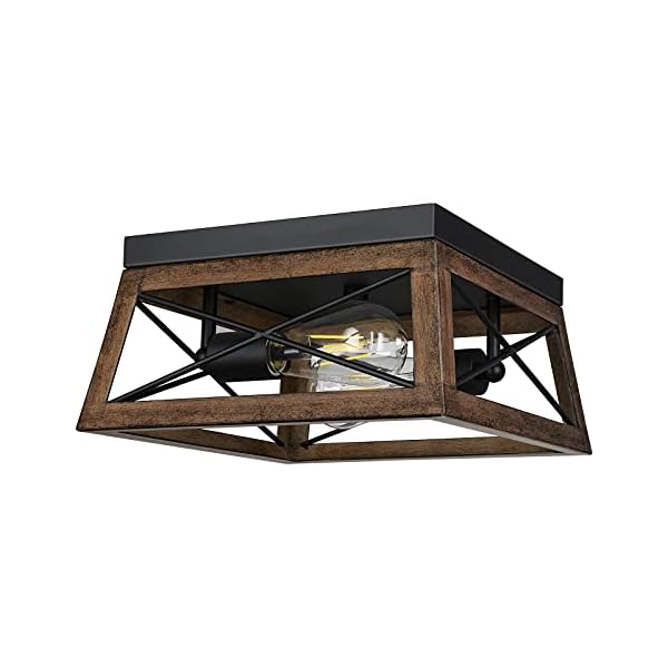 DEWENWILS Farmhouse Ceiling Light Fixture, Metal Flush Mount Ceiling Light with Wood Grain Finish, 2-Lights Ceiling Lamp for for Hallway, Entryway, Kitchen, Foyer