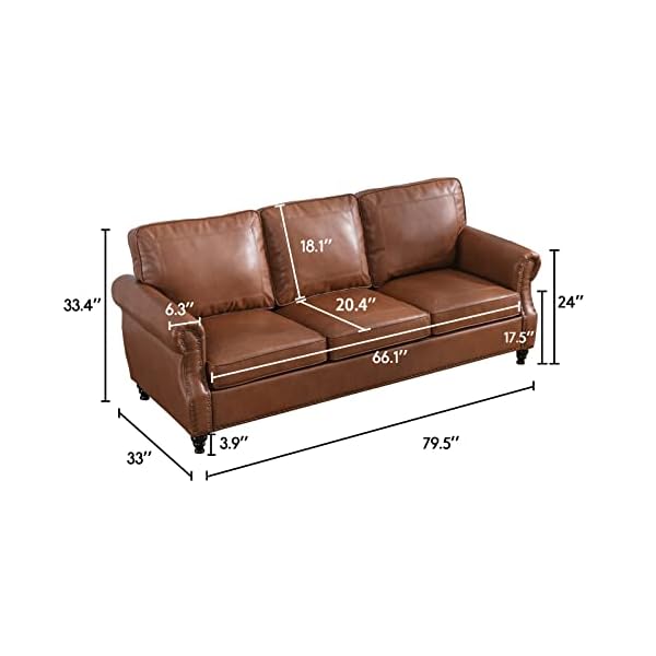 Dreamsir 79” Traditional Faux Leather Sofa Couch with Nailhead Trim, Classic 3-Seater Sofa with Rolled Arm for Living Room, Bedroom, Apartment, Easy Assembly (Brown)