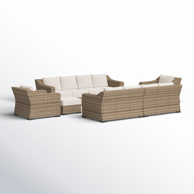 Gather your friends and family for a delightful outdoor experience with this eight-piece sofa seating group. Featuring deep seating chairs with aluminum frames wrapped in flat-woven wicker, this set offers a classic look that’s perfect for any outdoor space. The polypropylene cushions provide a cozy spot to relax, while the removable, machine-washable covers make maintenance a breeze. With seating for eight, this ensemble is ideal for weekend get-togethers and backyard barbecues. Plus, the foam-filled cushions ensure everyone stays comfy while enjoying the fresh air. Birch Lane™