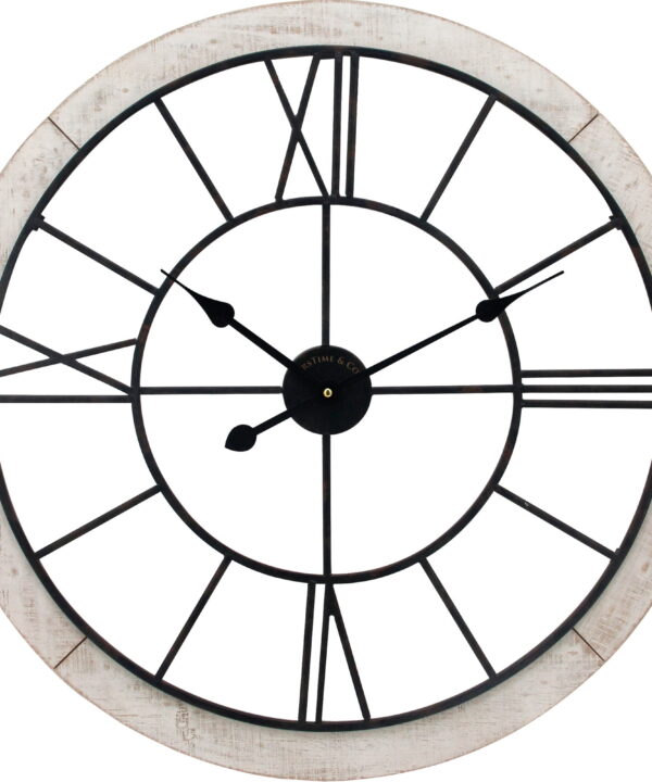 Bring home the charm of a country cottage with the Oversized Elsner Wall Clock. A rustic whitewashed frame surrounds wrought-iron numerals to create the perfect blend of weathered elegance. The impressive size makes it a classic, prominent timepiece to complete your farmhouse decor.