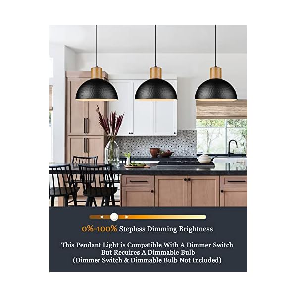 ????【Patent Design Pendant Light】 ① With 20+ years of experience in illumination production and a professional design team, we take care of strict regulate over product quality and attention to detail. Because of this, we have obtained a couple of patents for both the appearance design and functional. ② The modern industrial pendant light features a rubber wood and hammered metal shade, ideal for kitchens, dining rooms, living rooms and more. Add a touch of contemporary industrial style to your home now!