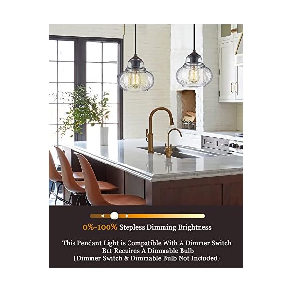 ????【 Vintage & Industrial 】 ELYONA seeded pendant light uses handcraft bubble glass lampshade with oil rubbed bronze metal base, creates the comfortable atmosphere for you when emitting the softer light. Perfect for kitchen islands, dining room, bedroom, bars, restaurants, or any place where creative lights are needed. Add this vintage industrial looking to your home now!