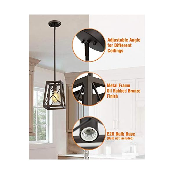 【Design】The pendant lights features metal frame in oil rubbed bronze finish, with sharp, intersecting lines in a geometric framework features a industrial style will add charm to any space.