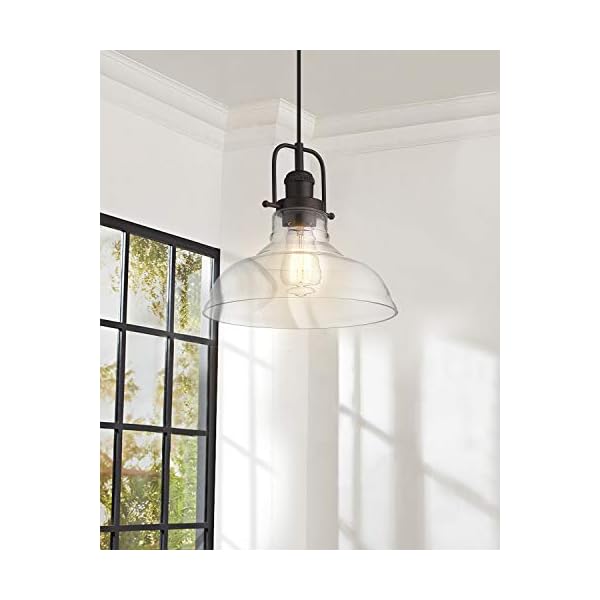 FEMILA Vintage Pendant Lighting, Farmhouse Schoolhouse Hanging Light Fixture with Adjustable Height, Clear Glass Shade, Oil Rubbed Bronze Finish, 4FY09-MP ORB