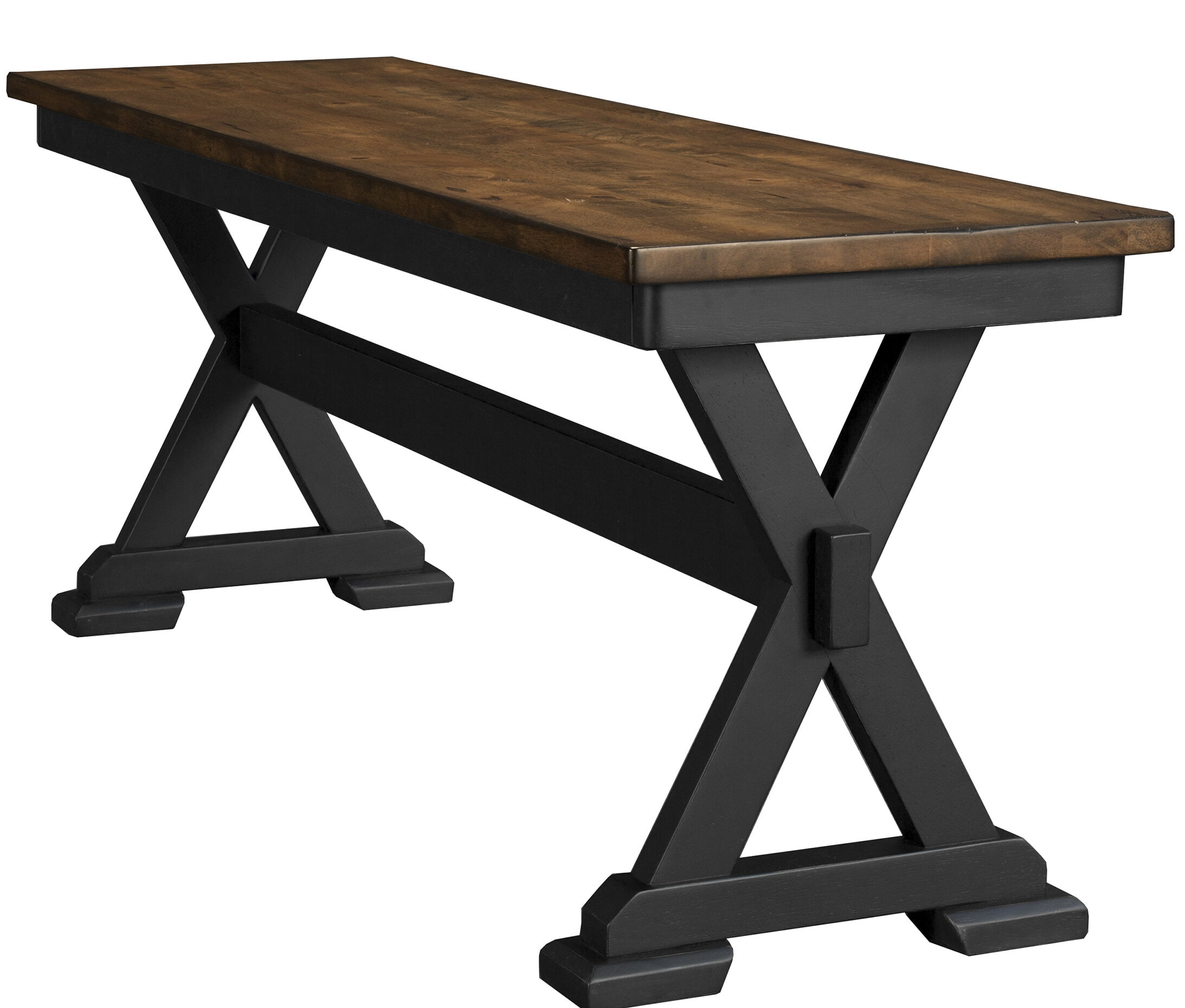 The Grear Dining Collection invites warm hospitality to the dining room with its practical farmhouse style. Design details such as the hourglass-inspired trestle on both the table and bench are reproduced in the X-shapes gracing the sideboard doors. Pronounced distressing in the chicory finish mimics the look of time-worn wood that is contrasted by the soft slate black paint recalling faint chalky memories of a by-gone era.