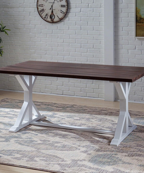 Solid Wood FrameIts solid acacia wood frame sporting bright white legs with a smooth and easy-to-clean table top boasting a deep brown hue. |