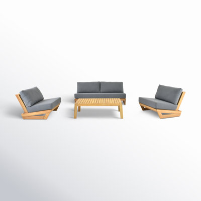 Live outdoors in ultimate comfort! Time to relax with family and friends! This beautiful outdoor 4 piece chat set from the Yacht collection is made from Grade A solid teak and features a modern and sleek design with the comfiest of Sunbrella cushions. This set really makes a statement! AllModern