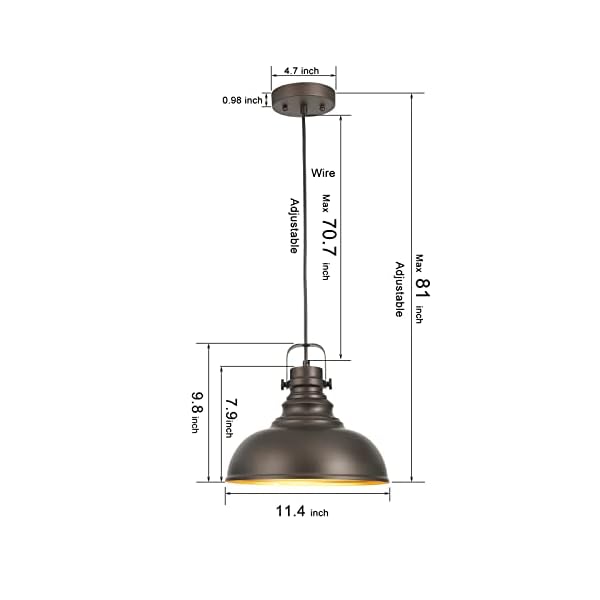 INDUSTRIAL & VINTAGE DESIGN: 1-Light Pendant lighting for kitchen island, Oil Rubbed Bronze Finish Featuring retro-style dome shade, this farmhouse pendant lighting for kitchen is made of sturdy metal construction in oil rubbed bronze finish and inner gold finish The island lighting fixtures hanging is ideal for home, dining room, kitchen island, warehouse, entryway, corridor, restaurant, cafe, bar, club, barn, working bench.Plus, it’s compatible with a dimmer switch, so you can set the ideal mood.