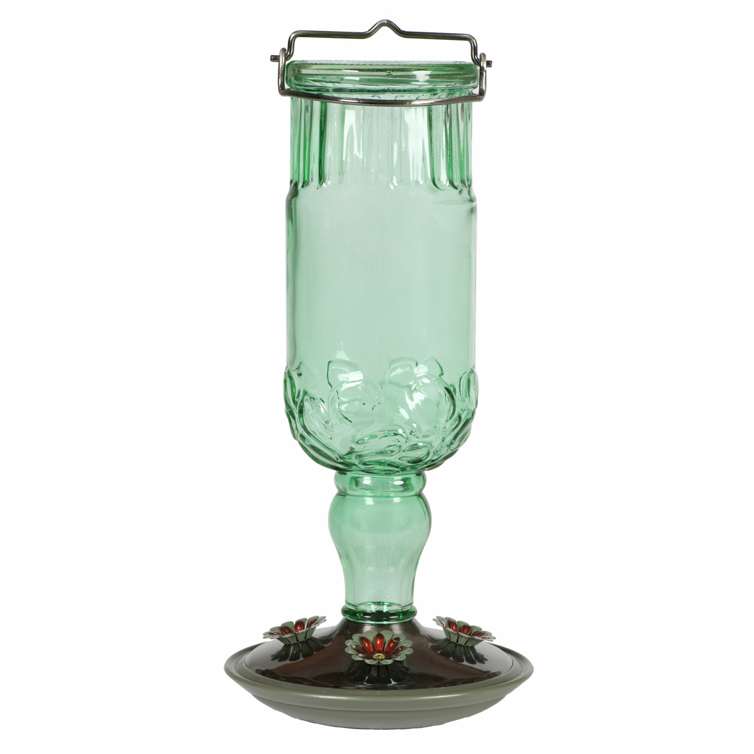 Bring a touch of elegance to your yard with the Perky-Pet Red Antique Bottle Hummingbird Feeder. You will love the vintage accents and the hummingbirds will love feeding from the four decorative metal feeding ports. This large-capacity feeder holds 24 fl oz of nectar to ensure that there will be plenty to go around! The bright red of this feeder is sure to attract the hungry hummingbird’s attention and before you know it, they will be swarming to your yard! Remember to clean your feeder once every two weeks with a mild soap and water solution.