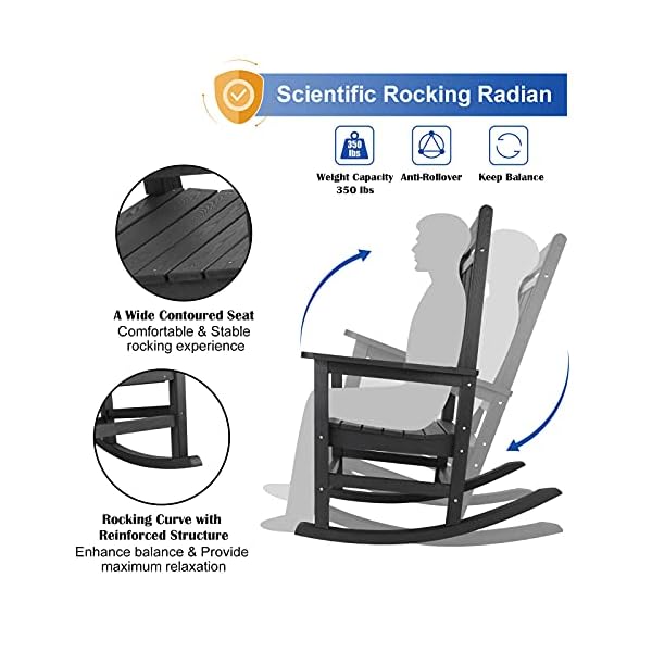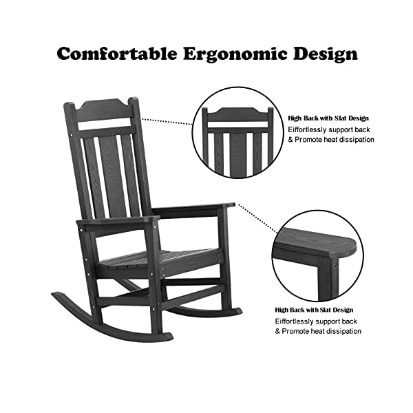 ???????????????????? & ???????????????????????????????????????????? ???????????????????????????? ???????????????????? ???????????????????????? – A wide seat, armrests, and sturdy high back slatted backrest creates a comfortable spot to take a seat at the same time as you rock.This rocking chair is designed with streamlined slat structure, which effectively promotes the heat dissipation. The 350 lbs load-bearing capacity can make people of any body type actually feel at ease