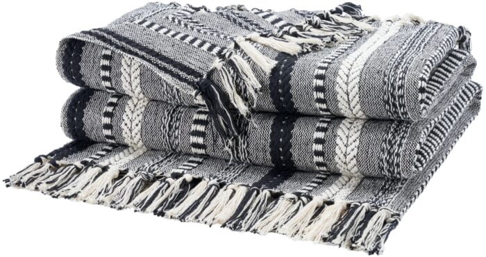 This woven throw blanket adds texture and plenty of casual charm at the foot of your bed or draped over an armchair in your living room. It’s crafted from cotton in an array of colors to choose from, and it showcases a multi-striped pattern with tasseled ends for a tactile feel. We love that its 50″ wide by 60″ long design is just right for wrapping yourself up on chilly nights or when you want to get comfy while you watch TV. To keep it looking good, we recommend taking this blanket to your dry cleaning pros.