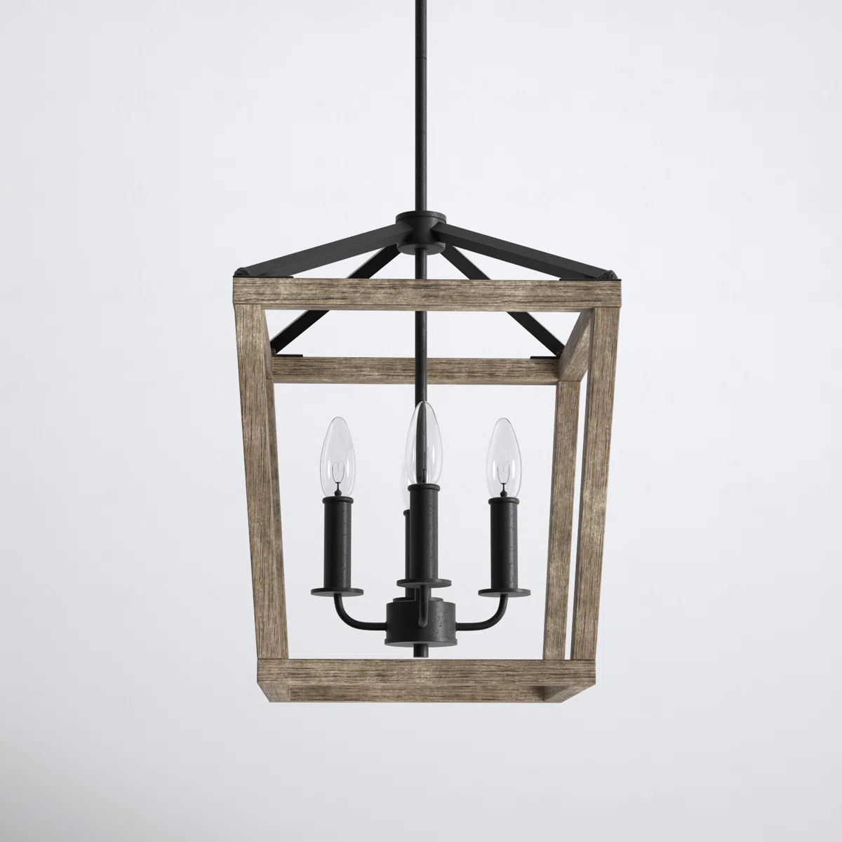 Bring rustic character and timeless style to your home with this 4-light lantern-style chandelier. Crafted from metal, it features an open geometric frame finished in a weathered oak tone that highlights the exposed bulbs within. The four bulbs (sold separately) provide inviting illumination and are compatible with dimmer switches, allowing you to customize the ambiance. Rated for both dry and damp locations, this versatile fixture offers adjustable hanging height and sloped-ceiling compatibility, making it a beautiful fit for dining rooms, entryways, kitchens, or living spaces.