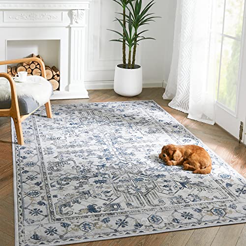 jinchan Area Rug 6×9 Washable Persian Rug Living Room Vintage Rug Boho Area Rug Large Rug Accent Rug Thin Carpet Retro Floral Print Indoor Mat for Bedroom Kitchen Farmhouse Blue