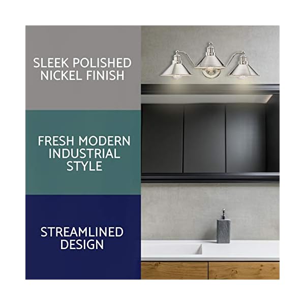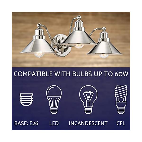 Kira Home Welton 25.5″ 3-Light Modern Farmhouse Bathroom Light, Vintage Vanity Barn Light, Polished Nickel Finish