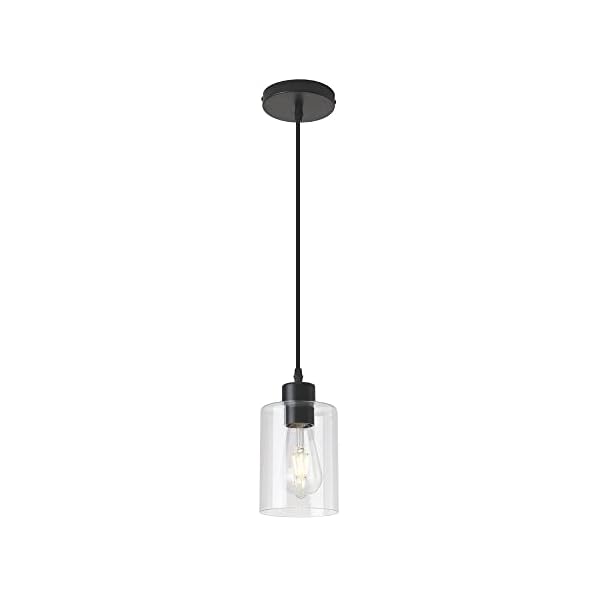 KLSS Modern Black Farmhouse Clear Glass Cylinder Pendant Light Fixture,Mini Pendant Lighting for Kitchen Island Decor – 4.75 Inch Shade, 2-58 Inch Cord, Matte Black.(1 Pack)