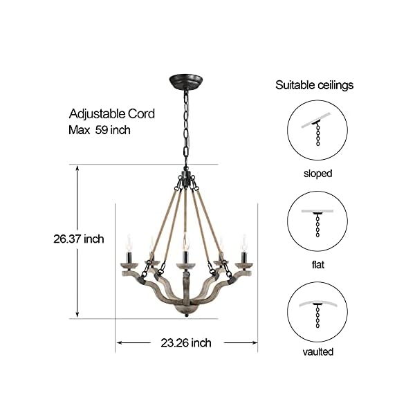 Vintage&Rustic Design: The farmhouse chandelier’s body is premium birch antique wood, ropes hold all the chandelier up, adding every other natural element that helps to tie a space together,the very best blend of rustic metal and hemp rope brings an authentic rustic revival style.open design allowing light to shine brightly, illuminating your home. Suits many interior styles including brand new & rustic.Remove darkness from any room with this gorgeous, candle-style rope chandelier.