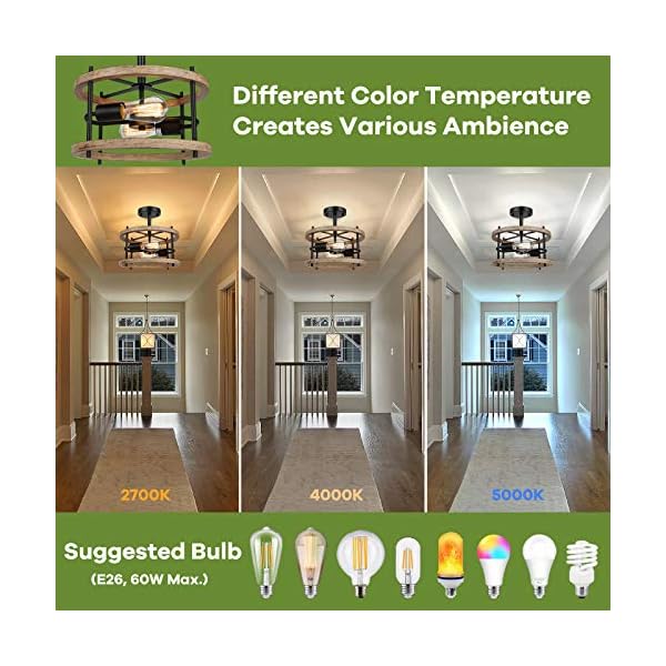 Lakumu 2-Light Retro Semi Flush Mount Ceiling Light Fixture, Rustic Vintage Wood Ceiling Light Black Metal, Industrial Farmhouse Ceiling Lamp for Hallway Entryway Bedroom Balcony Farmhouse Dining Room