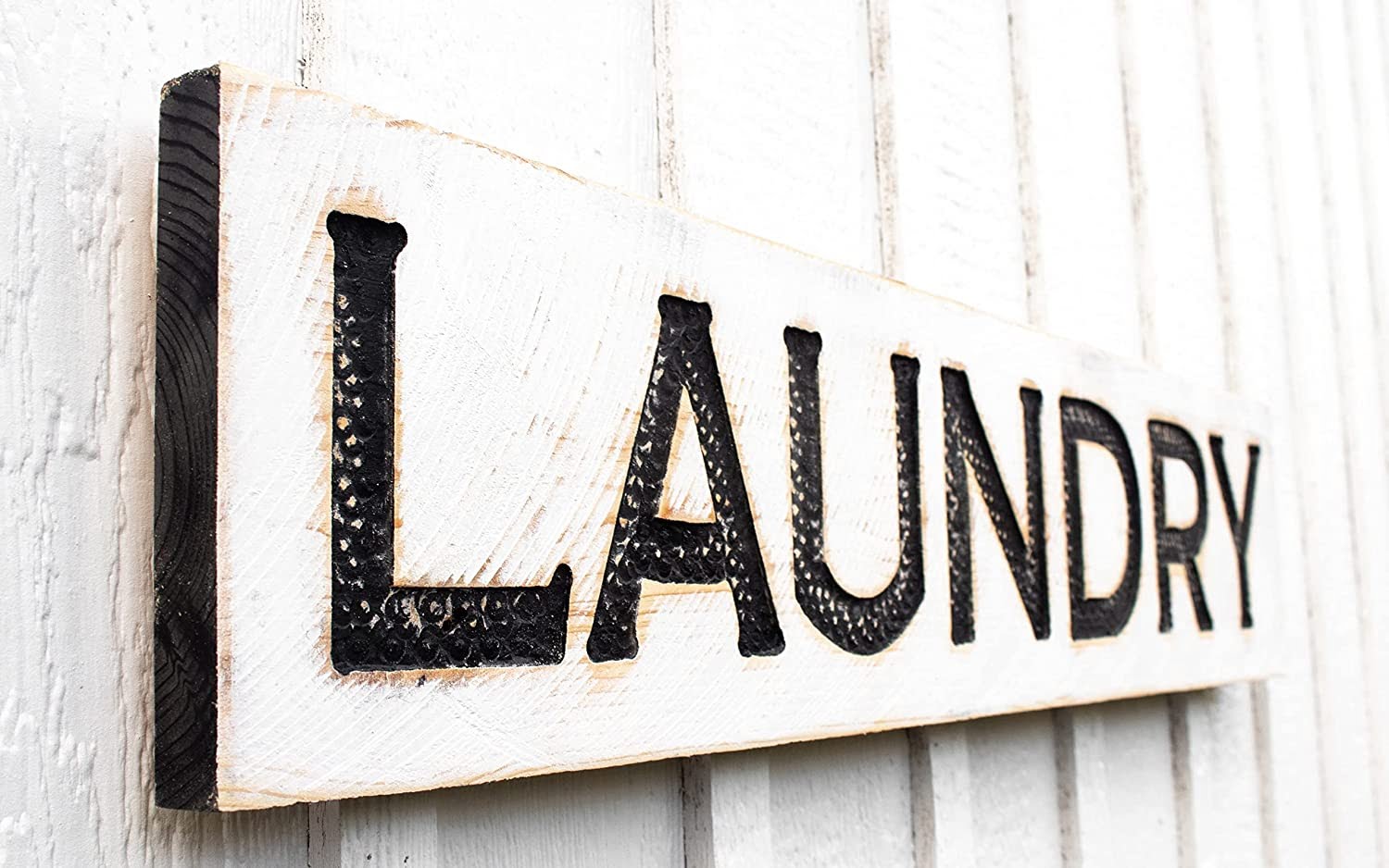 Laundry Sign – Carved in a 40″x8″ Solid Wood Board Rustic Distressed Shop Advertisement Farmhouse Style Room Wood Rustic