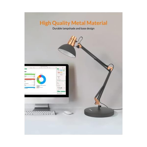 LEPOWER Metal Desk Lamp, Adjustable Goose Neck Architect Table Lamp with On/Off Switch, Swing Arm Desk Lamp with Clamp, Eye-Caring Reading Lamp for Bedroom, Study Room &Office (Sandy Black)