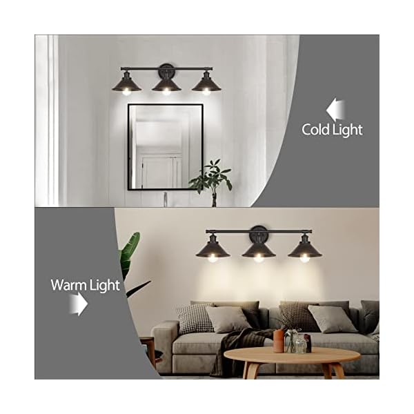 Licperron 3-Light Black Bathroom Vanity Light Fixtures Over Mirror, Farmhouse Vanity Wall Sconce Lighting with Metal Shade, Indoor Wall Mounted Lamp for Bathroom Mirror Cabinet Living Room