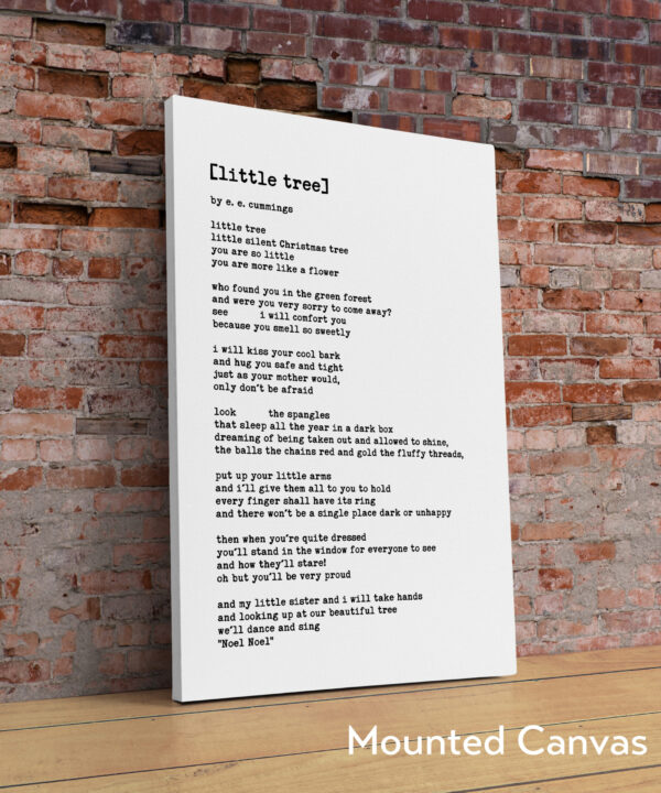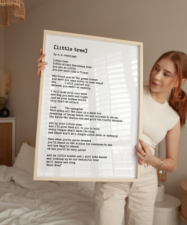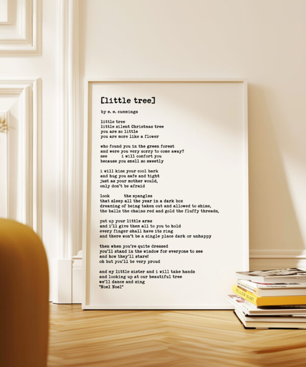 Celebrate the beauty of Christmas with our “[little tree]” Typography Art Print by E. E. Cummings. This charming piece showcases the tender sentiments expressed in the poem, reflecting the joy of family traditions and the wonder of a decorated tree. Ideal for cozying up your space or gifting to a loved one, this print serves as a timeless reminder of the joy and magic of the holiday season.